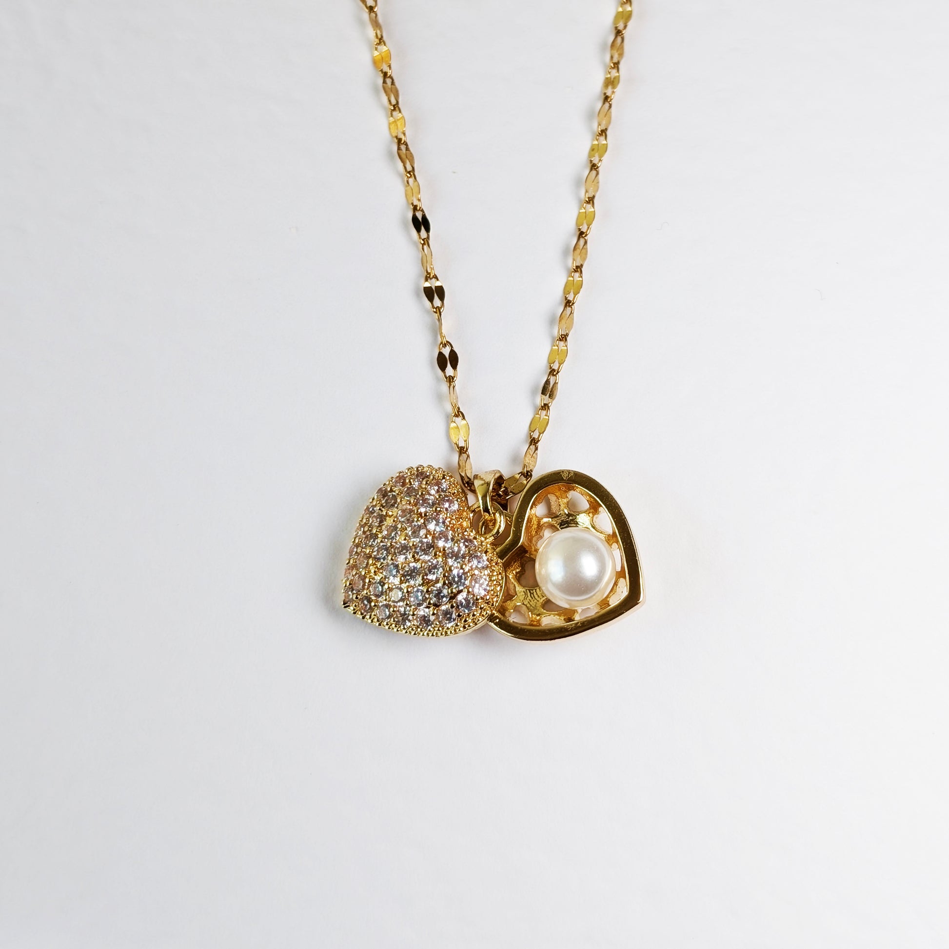 Minimal necklace, stainless steel necklace , pearl necklace, golden necklace, anti tarnish necklace, anti tarnish jewellery, heart necklace, heart jewellery.